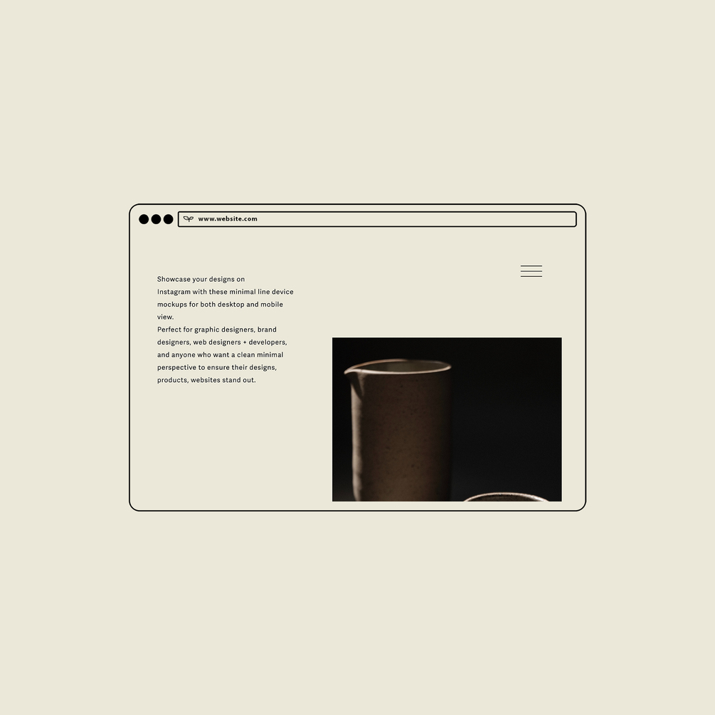 Showcase your designs on Instagram with these minimal line device mockups for both desktop and mobile view.